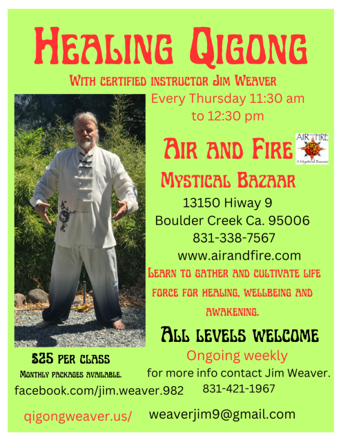 Gather and cultivate life force for healing and well being with certified instructor Jim Weaver. All levels are welcome.